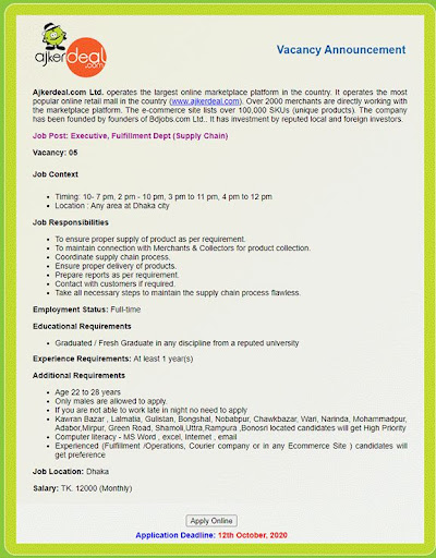 Ajkerdeal Job Circular 2020 Ajkerdeal Com Bdjobsfeed Job Circular Ecommerce Jobs Time Management Skills